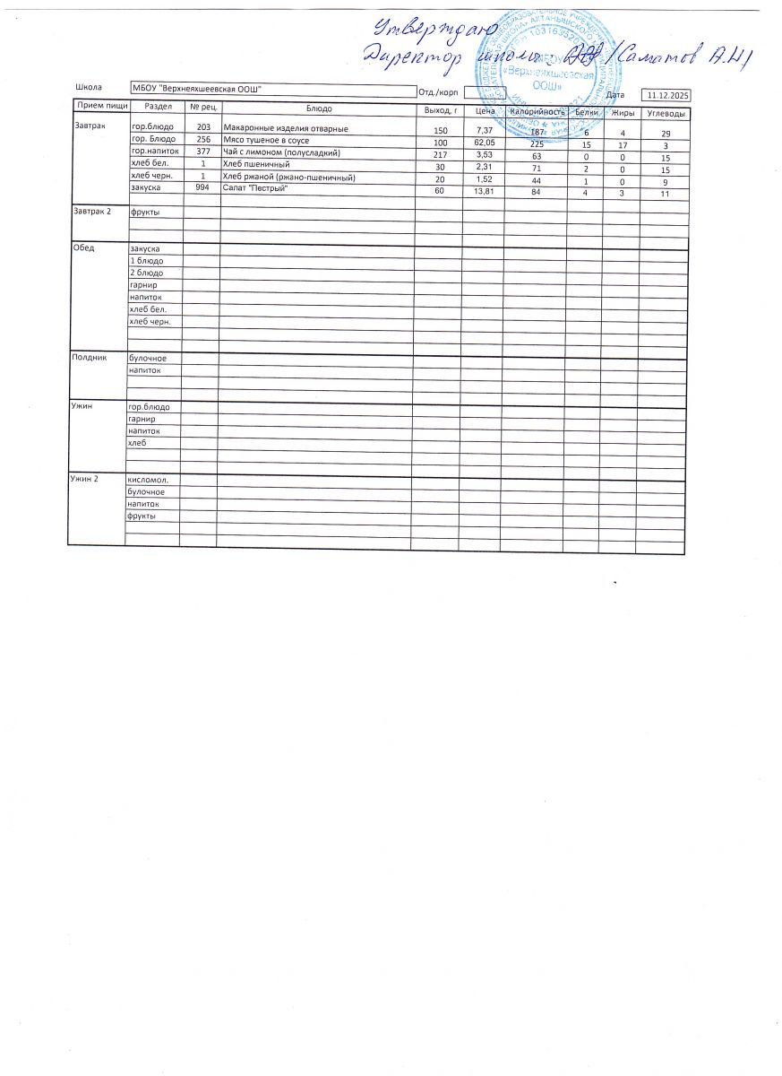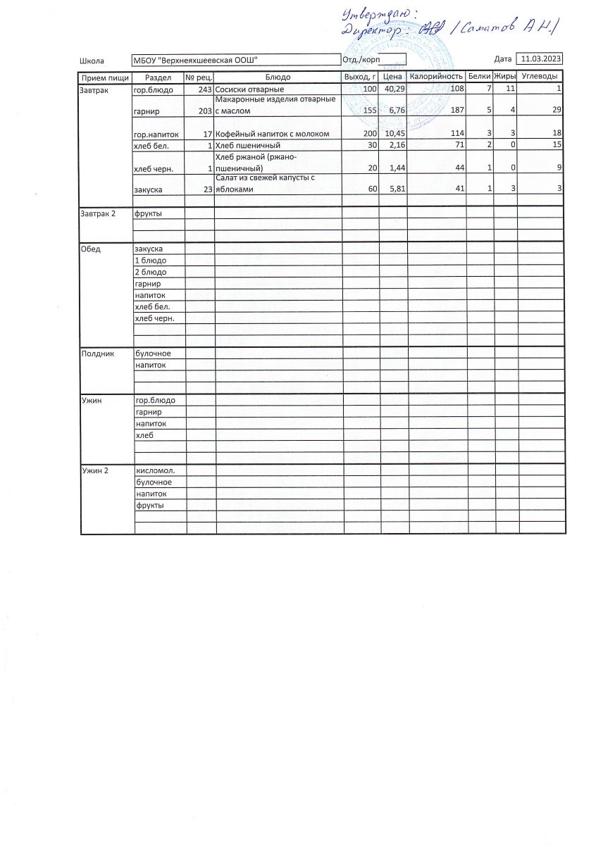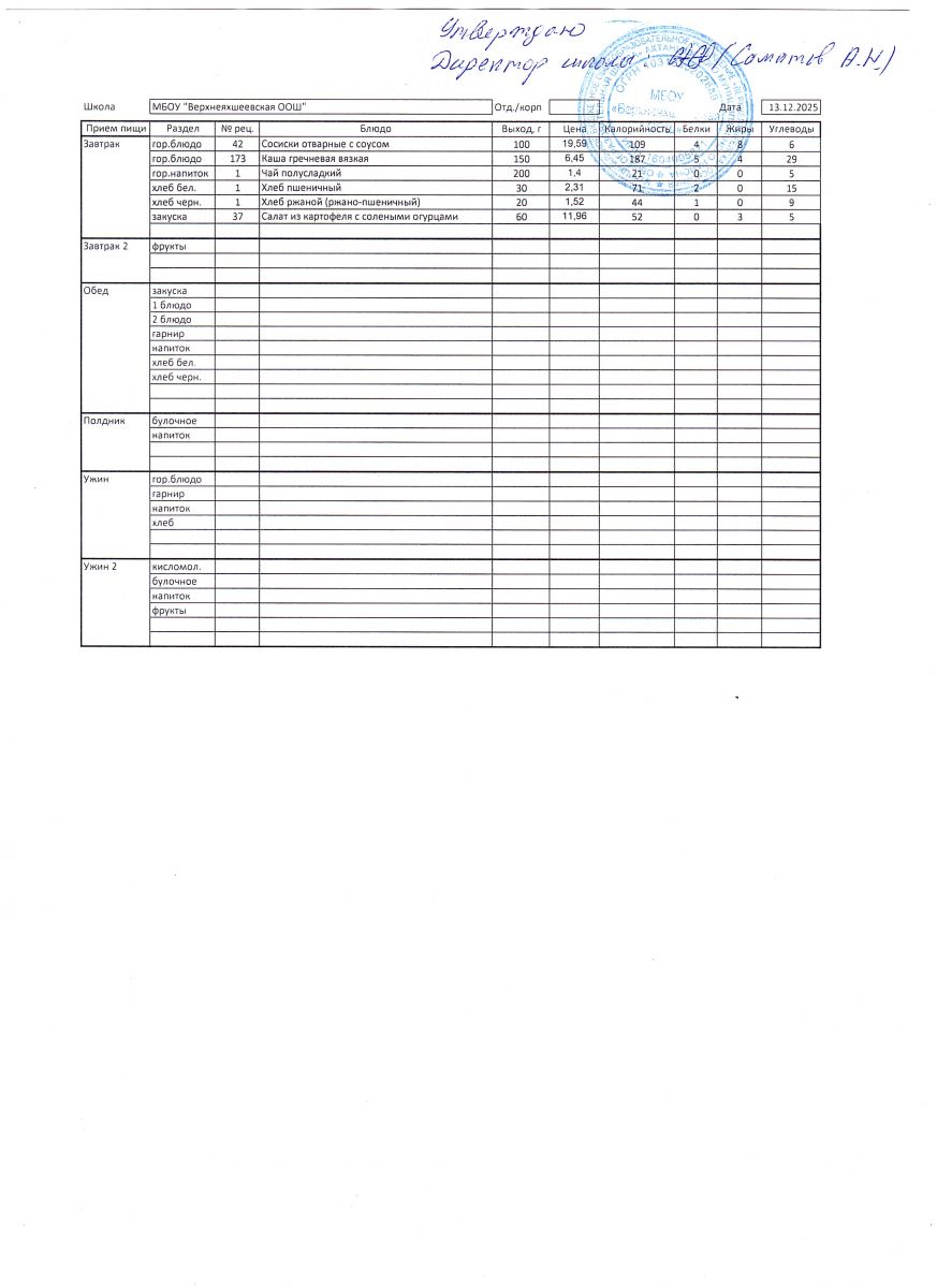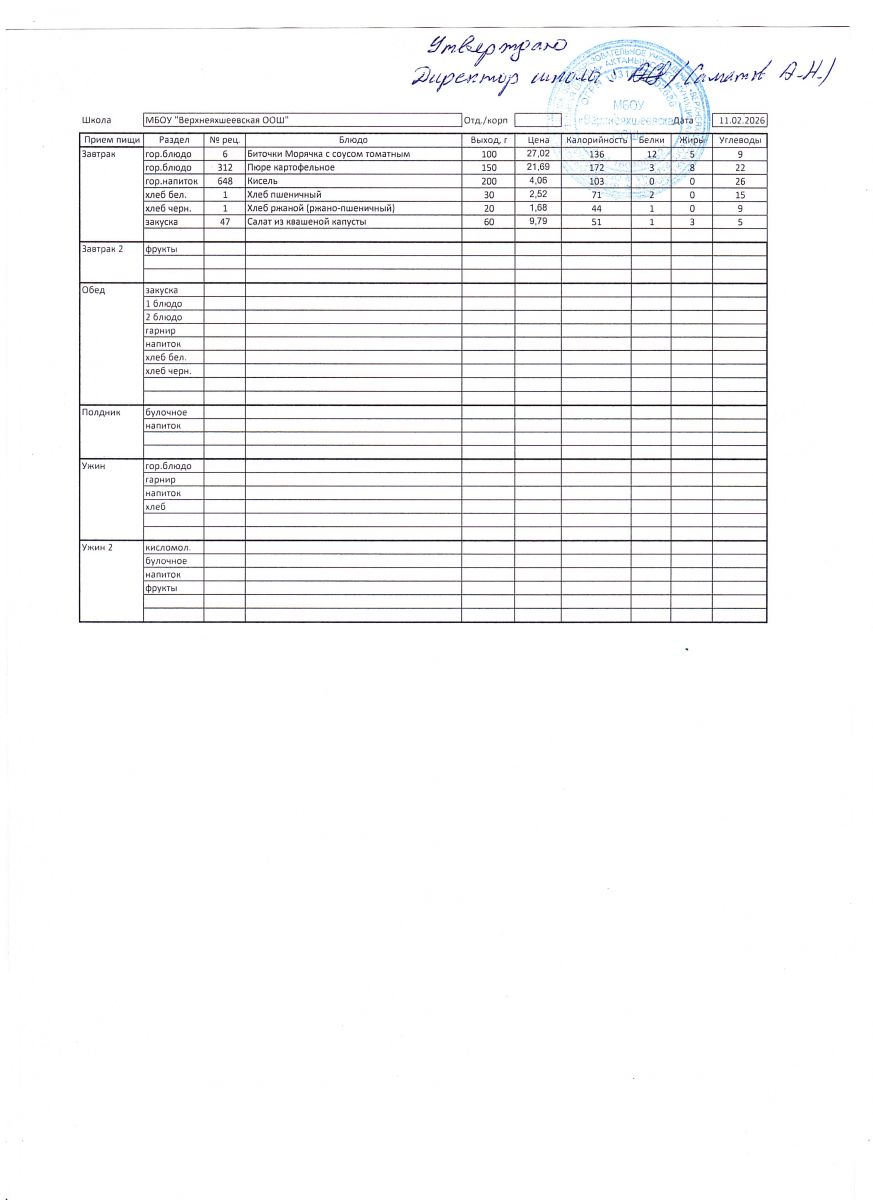 Однодневное меню на 11.09.2023 Однодневное меню на 12.09.2023 Однодневное меню на 13.09.2023