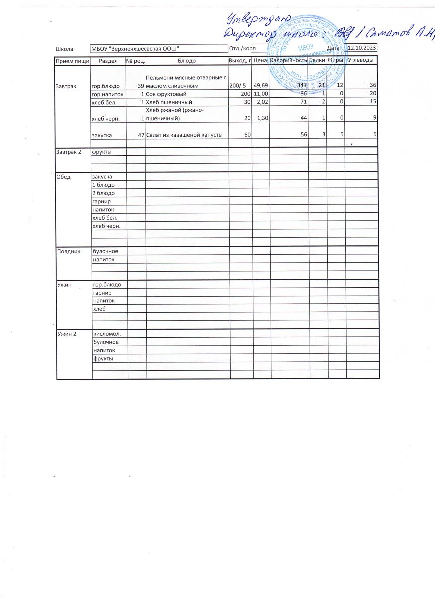 Однодневное меню на 12.10.2023 Однодневное меню на 13.10.2023 Однодневное меню на 14.10.2023