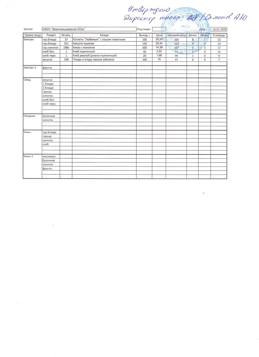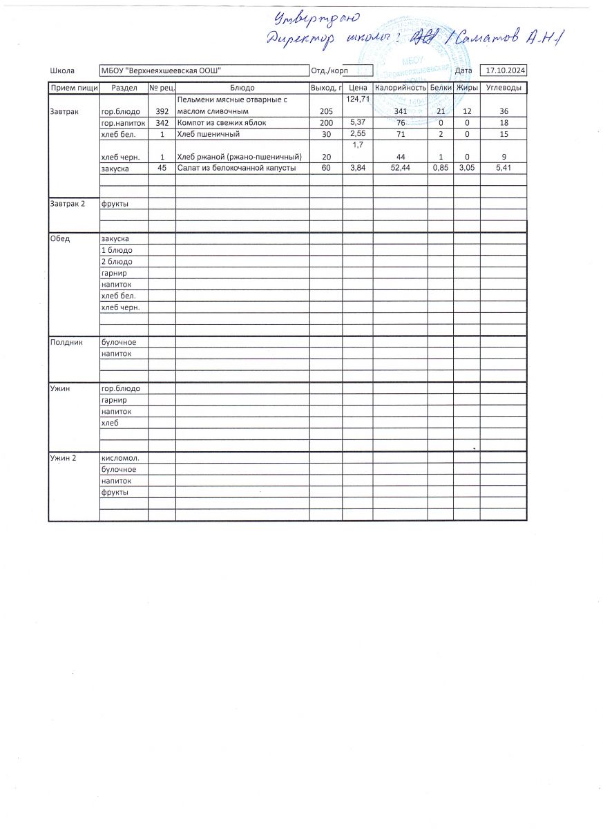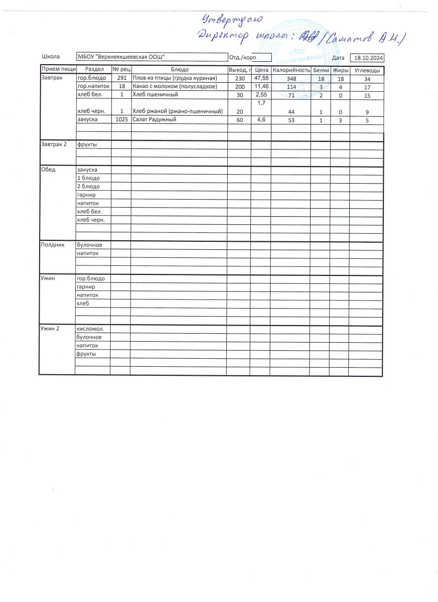 Однодневное меню на 16.10.2023 Однодневное меню на 17.10.2023 Однодневное меню на 18.10.2023