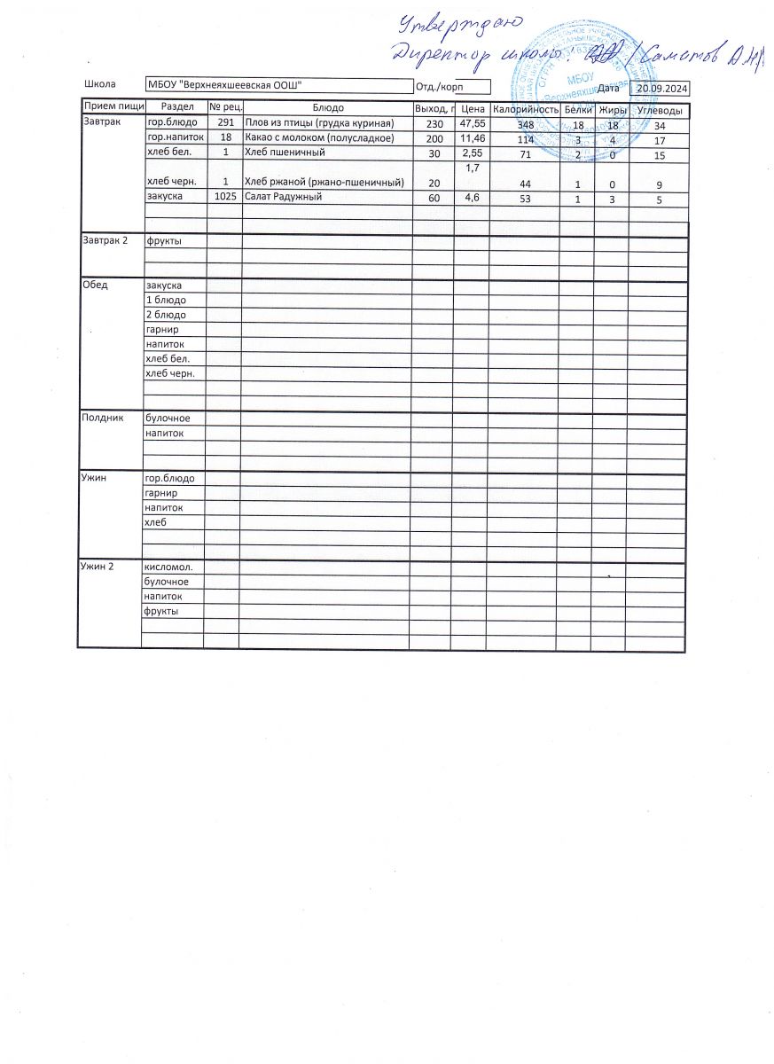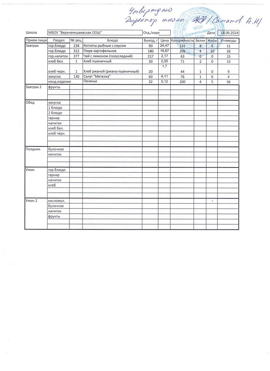 Однодневное меню на 18.09.2023 Однодневное меню на 19.09.2023 Однодневное меню на 20.09.2023