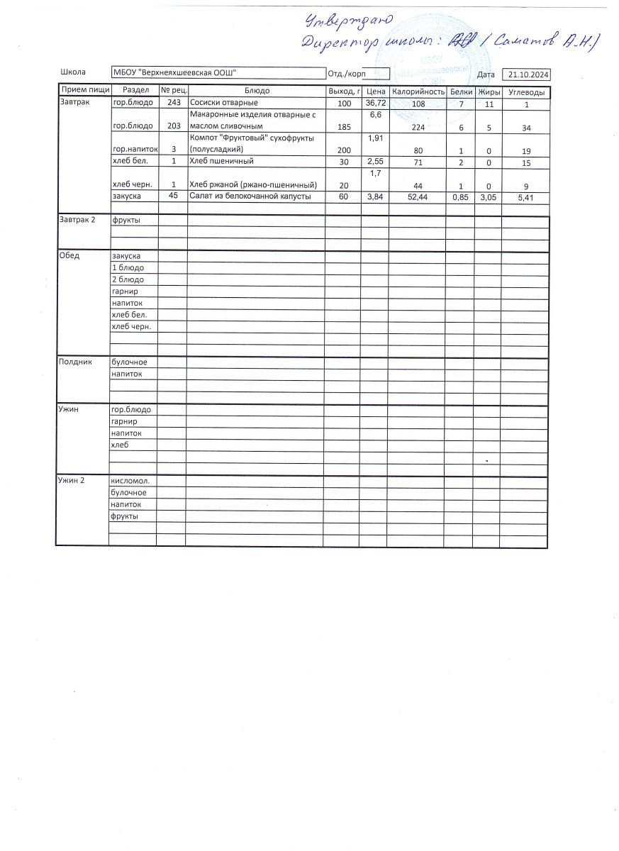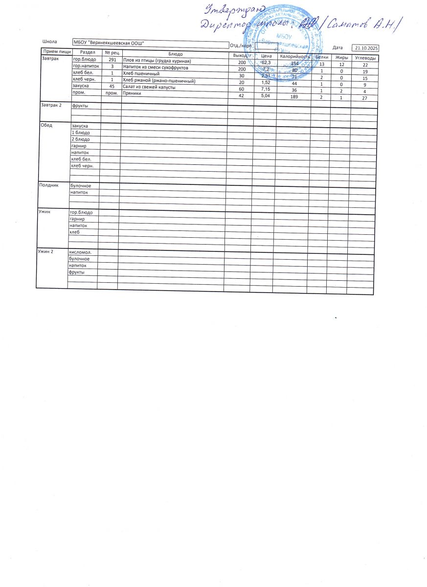 Однодневное меню на 19.10.2023 Однодневное меню на 20.10.2023 Однодневное меню на 21.10.2023