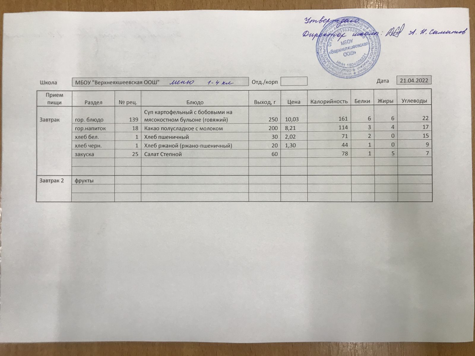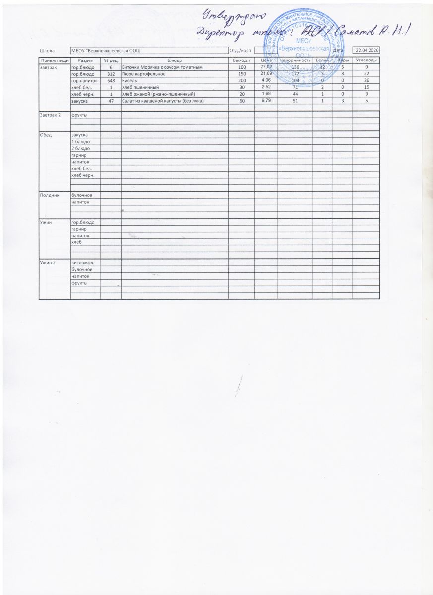 римерное двухнедельное меню с января 2022 года 5-11 кл