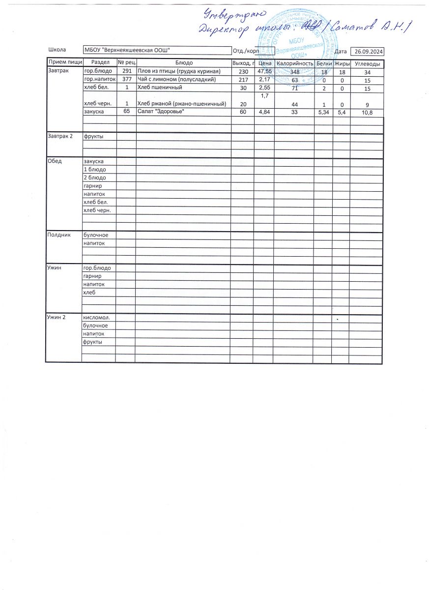 Однодневное меню на 25.09.2023 Однодневное меню на 26.09.2023 Однодневное меню на 27.09.2023