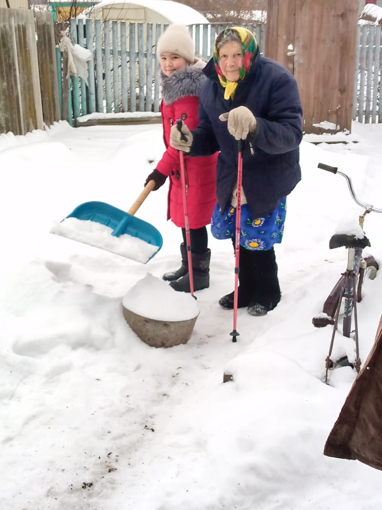 Укучыларыбыз һәрдаим өлкәннәребезгә ярдәм итеп торалар. 11 декабрь көнне 4 класс укучылары Гайниямал апага барып ишек алдын, капка төбен кардан арындырдылар