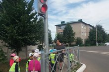С целью освежить и закрепить знания детей о правилах поведения на улице, воспитатель Нуртдинова Э.Ф. оранизовала экскурсию на регулируемый перекресток. Ребята с большим интересом наблюдали за работой светофора.