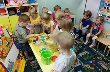 С детьми 2 группы раннего возраста провели занятие по развитию речи на тему: "Рассматривание сюжетной картины. Дети играют в песочнице". В процессе рассматривания активизировали речь, учились договариваривать слова строить небольшие фразы, а так же учились понимать содержание картины.