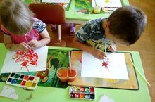 На занятии по художественно - эстетическому развитию дети старшей группы рисовали нетрадиционным способом в технике кляксография.
