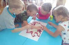 Ребята старшей группы с раннего утра восторженно рассказывали о своей республике и родном посёлке. Затем совместно с воспитателем изобразили герб Республики Татарстан в коллективной аппликации, смешанной техникой.