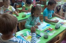 Дети учились отражать свои впечатления о лете в рисунке.Закрепили приемы работы кистью и красками.