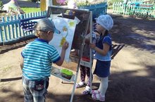 Лето – удивительная и благодатная пора, когда детям можно вдоволь гулять, бегать и прыгать.Именно в этот период они много времени проводят на воздухе. И очень важно так организовать жизнь дошкольников, чтобы каждый день приносил им что-то новое, был наполнен интересным содержанием, чтобы воспоминания о летнем времени, играх, прогулках, праздниках и развлечениях, интересных эпизодах из их жизни еще долго радовали детей.Поэтому на участке старшей группы в окружении и многообразии оборудования для игр воспитатель организовала маленькую мастерскую художника. Любимое занятие детей дошкольного возраста художественное творчество,через рисунок они выражают свои эмоции и переживания. В мастерской дети рисуют различные сюжеты на мольберте как настоящие художники. Раскрашивают раскраски, лепят из пластилина, рисуют на сыпучих материалах. -