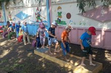 Дети подготовительной группы совместно с воспитателем прошли на физкультурном участке по тропе здоровья, преодолели препятствия в виде лесенок, балонов, ребристой и песочной поверхностей. Было проведено закаливание в виде босоножия. Дети проявили ловкость, умение, смелость. Мероприятие доставило детям много радости.
