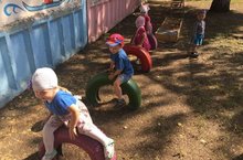 Дети второй группы раннего возраста "Солнышко" с воспитателем во время прогулки посетили спортиный участок.Они с удовольствием играли в различные игры,действовали по сигналу воспитателя.