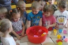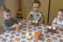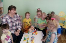 Дети младшей группы на занятии учились лепить мисочки для медведей разного размера.