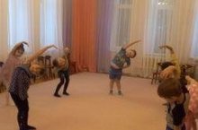 Утренняя гимнастика в старшей группе. Дети самостоятельно выполняют комплекс общеразвивающих упражений.