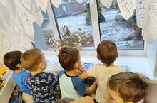 Ребята проснулись после тихого часа и увидели, что выпал первый снег