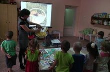 Воспитатель подготовительной группы Янонис М. показала открытое занятие по аппликации из шерстяных ниток " Яблочко"