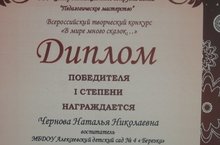 занявшую первое место во Всероссийском творческом конкурсе " В Мире много сказок"