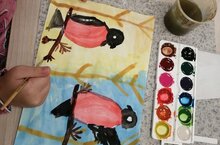 Воспитанники объединения "Семицветик" (педагог Гатина С.В.) дети старшей и подготовительной групп нарисовали ярких снегирей. -