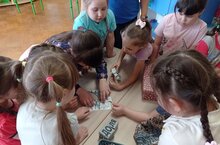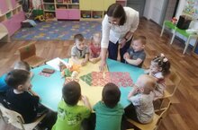 С детьми 2 группы раннего возраста провели занятие с элементами методики М. Монтессори. Дети закрепляли знания о геометрических фигурах - круг и квадрат, поиграли в игру , "Подбери крышку к банке", игра поручение "Сортировка круп", а так же поиграли в музыкальную физминутку" Паровозик" и дидактическую напольную игру "Найди цвет".