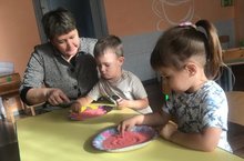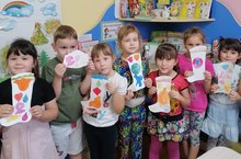Дети старшей расписывали доску городецкой росписью. Тем самым развивая чувства цвета, ритма, композиции. Работы получились яркие и красочные.