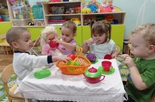 С детьми 2 группы раннего возраста играли в сюжетно-ролевую игру "День рождения у куклы Маши". Во время игры учились использовать вежливые слова "здравствуйте", "пожалуйста", " спасибо". Также развивали диалогическую речь и учились отвечать на вопросы.