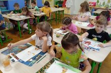 Дети подготовительной группы на занятии по художественно - эстетическому развитию ( рисование) учились передавать в рисунках эпизоды из своих любимых сказок, развивали творческое воображение при создании иллюстраций.