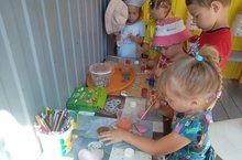 Во второй младшей группе «Солнышко» в рамках тематической недели проводились беседы и игровые ситуации «Правила маленького пешехода», «Правила безопасного поведения на улице», «Где должны играть дети». На занятии по лепке слепили колёса для автомобиля. Дети рассматривали иллюстрации.. Все игры были направленные на формирование первоначальных навыков поведения на улице и в транспорте, где детям следует играть на улице, чтобы обезопасить свою жизнь, дать представление об улице.