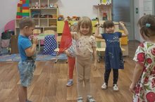 В рамках тематической недели " Великая страна - Россия" дети младшей группы познакомились с символами русского народного танца и разучили "Пляску с платочком".