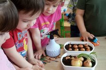 посадили лук, редиску,пшеницу .А теперь будем наблюдать и ухаживать за нашим маленьким "огородиком"!