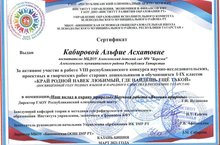 Воспитатель Кабирова А.А. приняла участие в работе IIIV Республиканской научно-исследовательской конференции "Край родной навек любимый, где найдешь еще такой".
