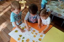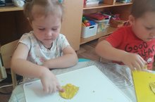 В рамках тематической недели "Осенняя пора", воспитатель младшей группы Кривова С.А. провела с детьми ООД по лепке "Осенние листочки" в технике "пластилинография".