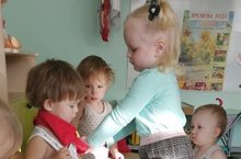 Ребята второй группы раннего возраста стараются самостоятельно одеваться и раздеваться. Тем ребятам которым трудно даются навыки самообслуживания, взаимовыручка всегда помогает. В рамках тематической недели "Неделя добрых дел" малыши закрепляют навыки самообслуживания. Воспитатель Хусаинова В.И.