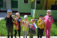 В праздник, День Российского флага, дети дошкольной группы изготовили поделку "Сердечная благодарность".