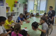 Утро в пришкольном лагере начался с проведения инструктажей по технике безопасности, утренней зарядки и вкусного завтрака. День прошёл под девизом «День дружбы и единения». Перед началом мероприятий вспомнили законы дружбы. В течение дня был проведён тематический час «Наш дом - Россия». На мероприятии поговорили о Родине, отвечали на вопросы, которые помогли закрепить знания о государственных символах, о культуре и быте нашей бескрайней Родине – России. Поучаствовали в интеллектуальной викторине, с помощью пластилина выполнили аппликацию «Флаг РФ». В спортивном зале было проведено спортивное мероприятие – спортивная солянка «Мы вместе». На спортивной площадке поиграли в различные подвижные игры «Цепи», «Третий лишний», «Коза» и т.д. После вкусного обеда ребята рисовали рисунки, выполняли аппликации на тему «Мы едины».