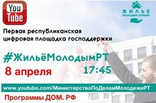 Сегодня представляется уникальная возможность получить информацию от федеральных и республиканских экспертов и специалистов, о федеральных программах ипотеки ДОМ РФ и республиканской программе «Молодая семья» на льготных условиях социальной ипотеки 7% годовых от ГЖФ РТ, о государственных субсидиях для молодых семьей 35% от стоимости жилья – на улучшение жилищных условий по программе «Обеспечение жильем молодых семей» и задать свои вопросы об участии в льготные жилищные программы и получить ответы напрямую от директора федерального Консультационного центра ДОМ.РФ Михаила Ковалева, специалистов и экспертов Минмолодежи Татарстана и ГЖФ РТ.Чтобы подключиться к трансляции прямого эфира #ЖильёМолодымРТ нужно в пятницу, 8 апреля зайти в 17.45 на YouTube канал Минмолодежи РТ, или по ссылке https://www.youtube.com/c/МинистерствоподеламмолодежиРТ/featured