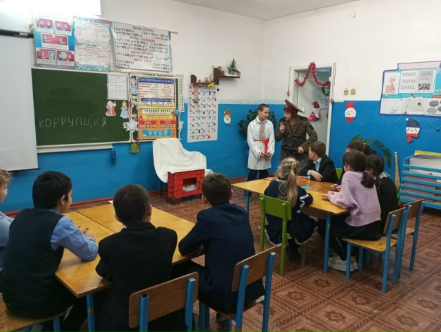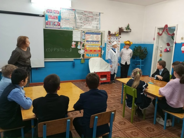 9 декабря отмечается Международный день борьбы с коррупцией. В начальных классах прошёл классный час "Коррупция в мире сказок". Сказочные герои дядя Стёпа, Емеля, доктор Айболит и мартышка помогли понять, что такое коррупция. На вопросы теста дети отвечали сигнальными карточками. Ребята убедились, что всегда надо быть честным, не нарушать законы.Конева Александра, ученица 4 класса приняла участие в республиканском творческом конкурсе антикоррупционной направленности. Номинация: аппликация.