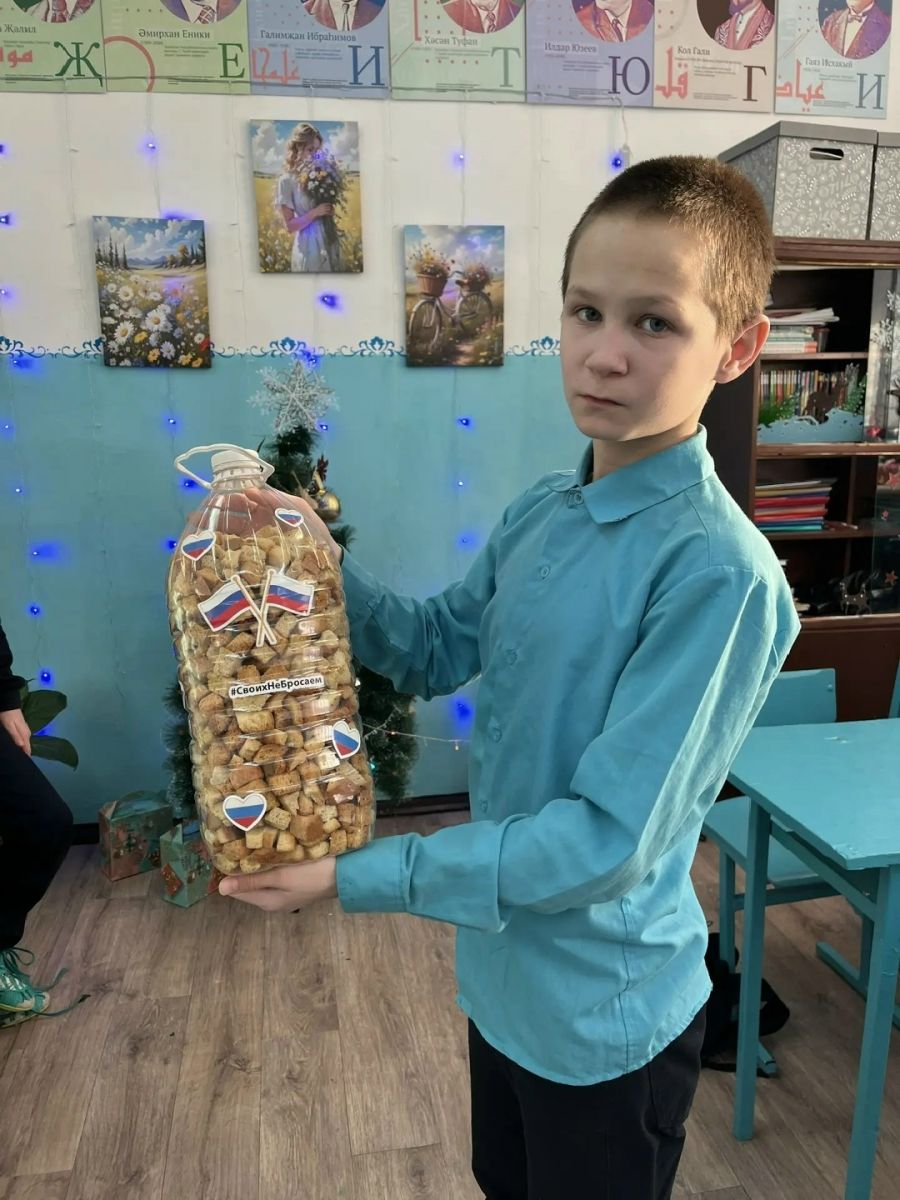 Вместе с сухариками, ребята готовят поздравительные открытки, короткие письма, приносят из дома разнообразные целебные травы, такие как липа, душица, мелисса, зверобой, иван-чай и мята и упаковывают в специальные пакеты. К каждому пакету приложена записка с теплыми словами благодарности и пожеланиями скорейшего возвращения домой с победой.Сбор гуманитарной помощи сплачивает людей здесь, вдали от зоны СВО. Так было и во время Великой Отечественной войны. Так происходит и сегодня. Все это делается для того, чтобы нашим защитникам стало чуть теплее от нашей заботы. Да и каждого из нас греет мысль, что мы помогаем сделать хотя бы что-то для наших бойцов. -