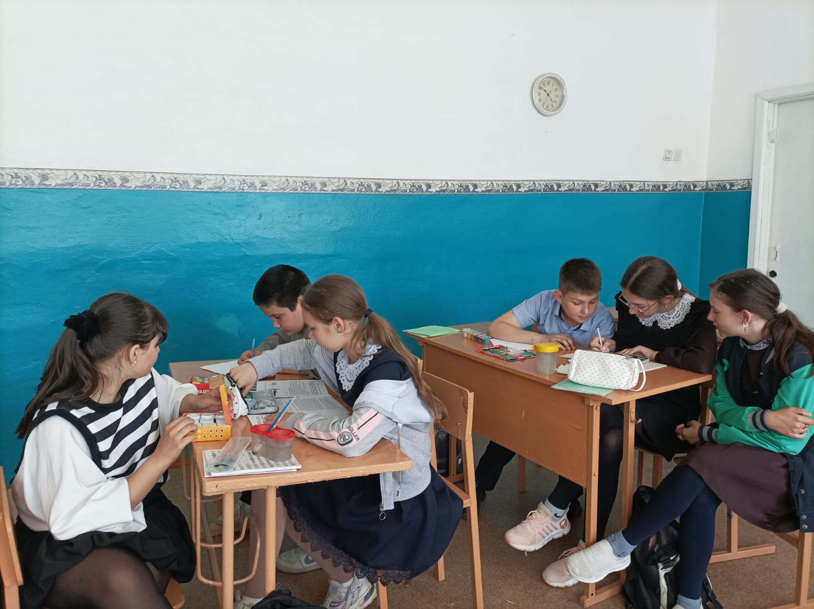 В пятом классе прошёл урок, посвящённый Дню славянской письменности и культуры. Официальный статус этот праздник получил в 1991 году. Дети узнали историю возникновения праздника. На уроке выясняли смысл таких фразеологизмов, как "сделать на ять". Во время физминутки показывали названия частей тела: ланиты, выя, чело, персты, очи. Ребята проявили изобретательность в рисовании буквицы.