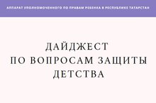 В целях систематизации новостных материалов по актуальным вопросам защиты детства, в целях широкого информирования населения, родительской общественности об изменениях в федеральном и региональном законодательстве, принятых нормативных актах института защиты прав ребенка и инициативах в интересах детей и семей с детьми Аппаратом Уполномоченного по правам ребенка в Республике Татарстан подготовлен девятый сборник Дайджеста по вопросам защиты детства в электронном формате.