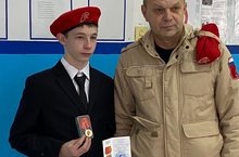 Награждение Павлинова Ивана знаком «Юнармейской доблести» ВВПОД «ЮНАРМИЯ».