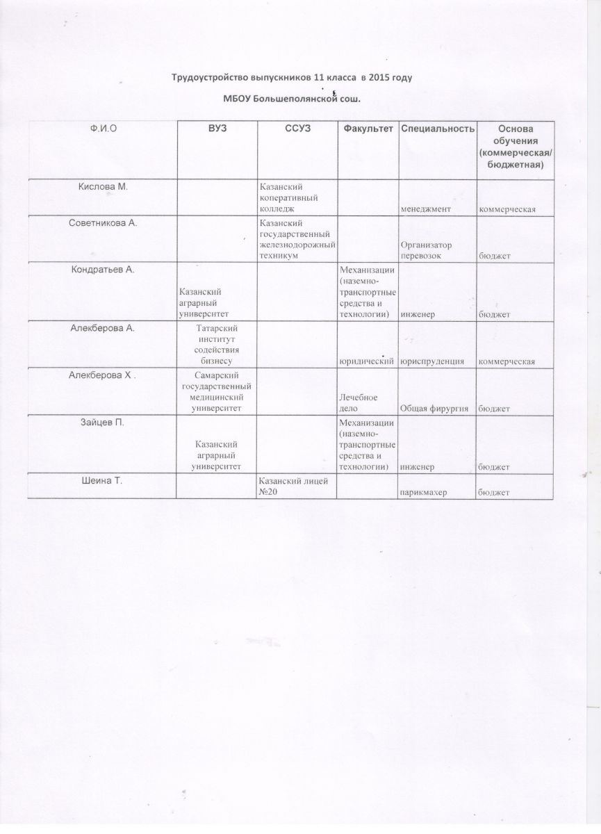 ►Трудоустройство выпускников XI классов 2014-2015 учебного года;