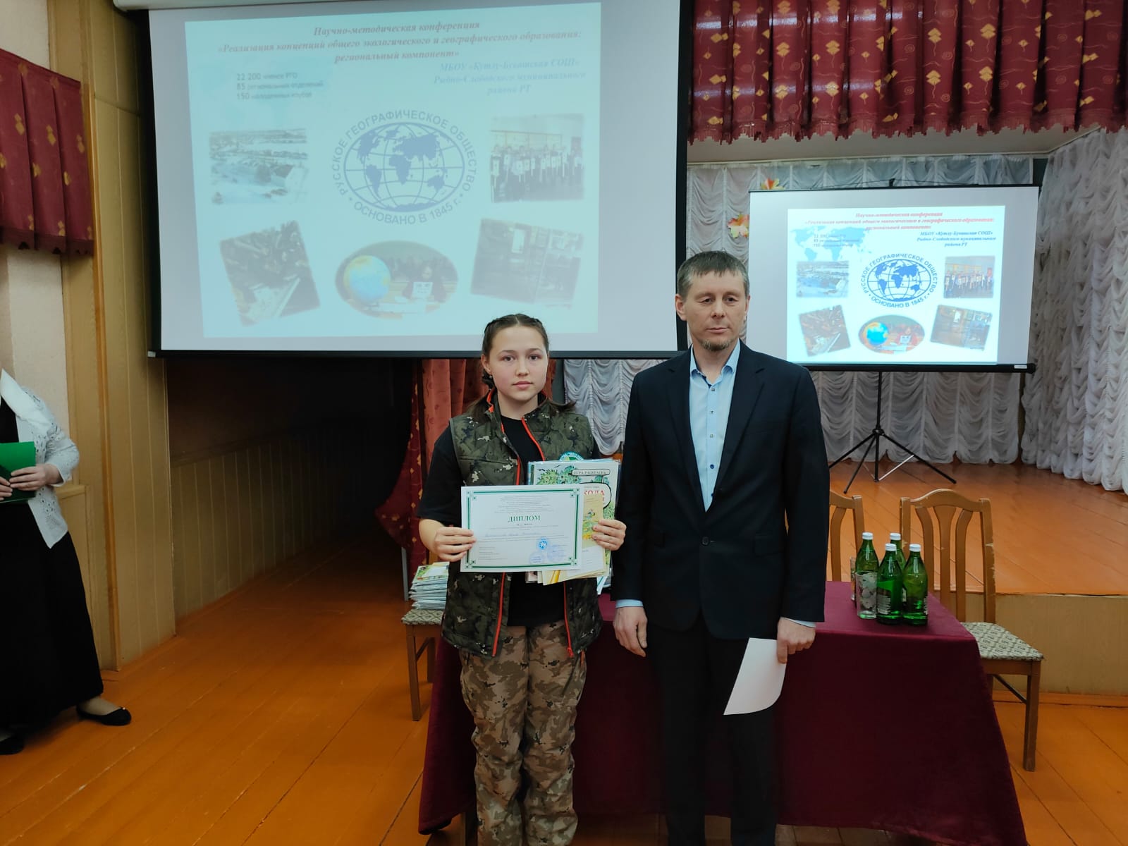 17 ноября в Рыбно-Слободском районе состоялась Региональная научно- методическая конференция школьников, студентов: «Реализация концепций общего экологического и географического образования, региональный компонент». Гашкаримова Адиля стала обладателем Диплома 2 степени, руководитель: Галимов И.Н. в секции: «Экологические проблемы родного края», для обучающихся 7-9 классов. Поздравляем! Желаем дальнейших успехов!