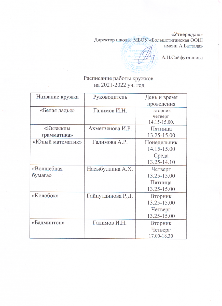 | Короткое название: | МБОУ "Большетиганская ООШ им. А. Баттала" |