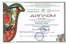Ученица 1 го класса Медведева А. участвовала в Республиканском конкурсе "Я люблю тебя, Татарстан!" в номинации:"Общаемся на языке дружбы" и была награждена Дипломом II степени. Руководитель Шамсутдинова Р.М.Поздравляем!.