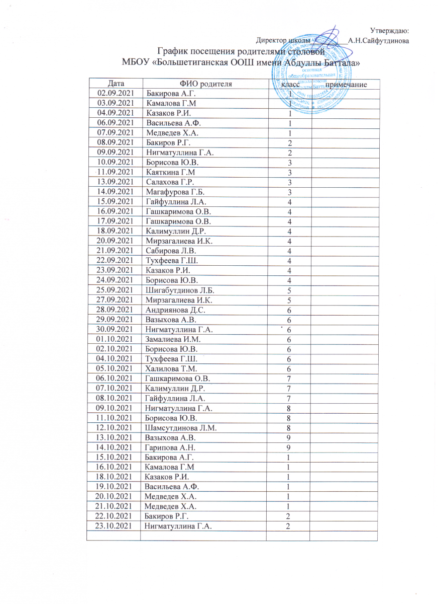 График посещения родителями столовой