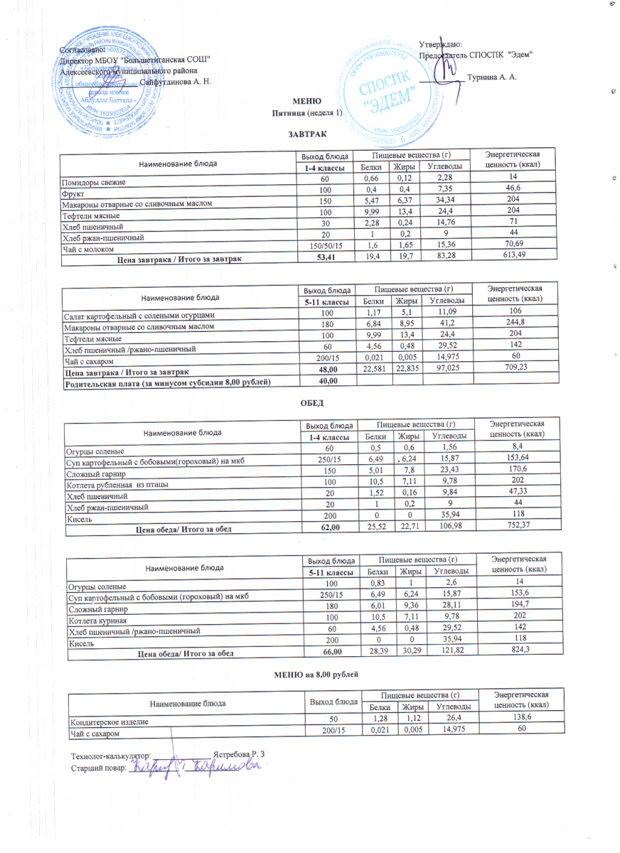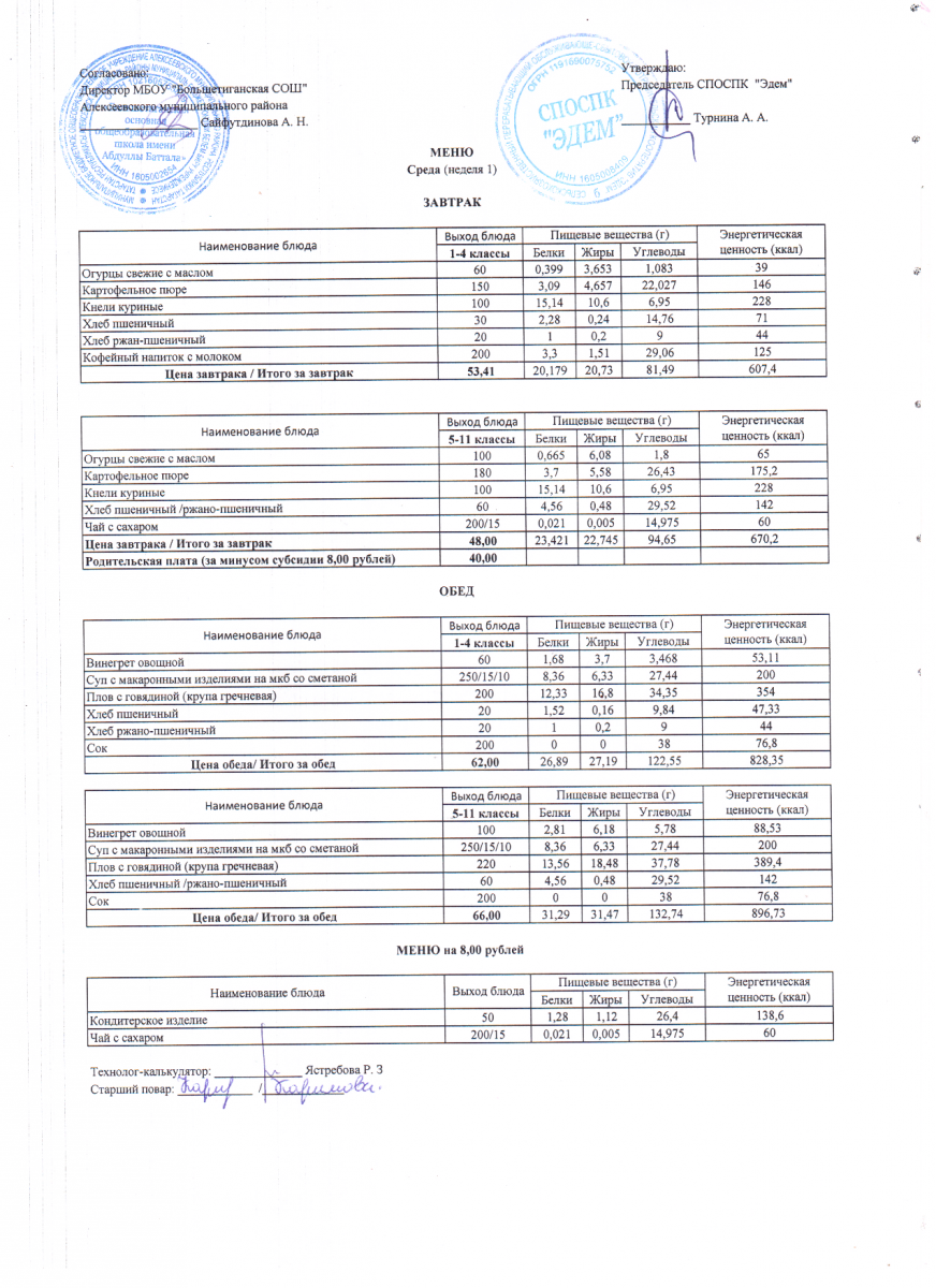 - 12 дневное меню по МБОУ "Большетиганская ООШ имени Абдуллы Баттала" (Дошкольная группа)