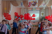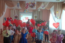Ребята средней группы поздравили мам и бабушек с весенним праздником. Стихи, песни, веселые танцы порадовали гостей.