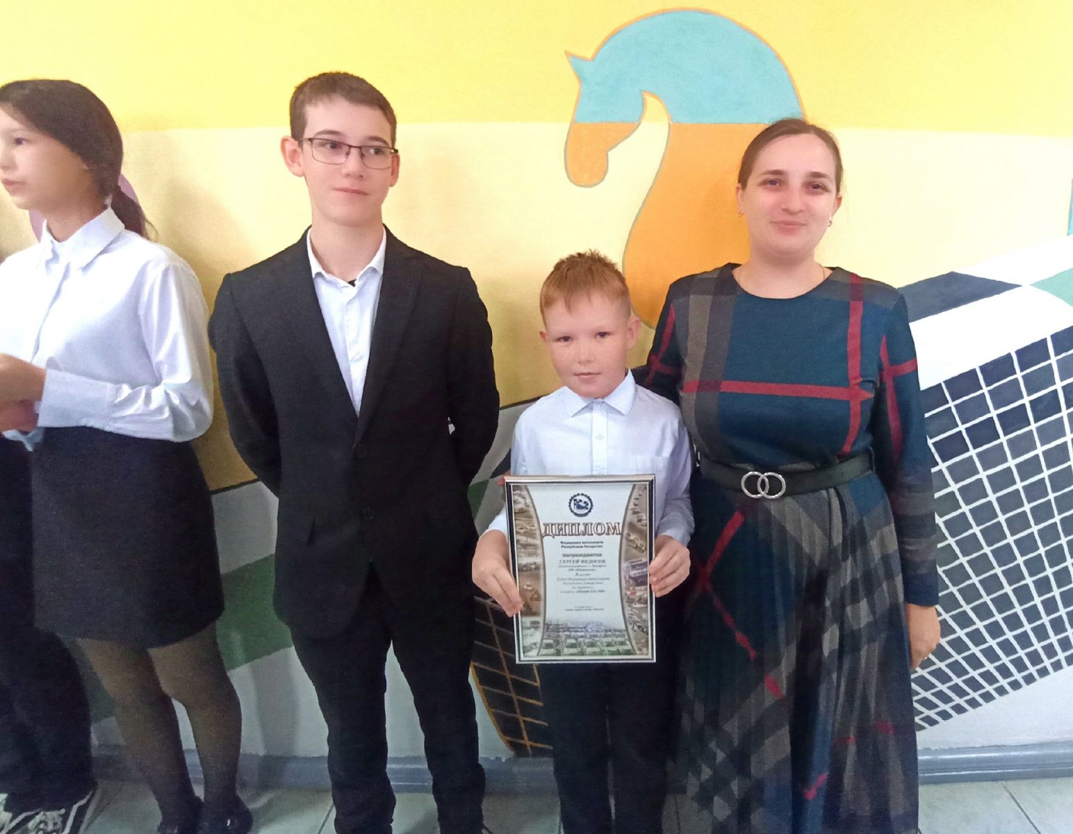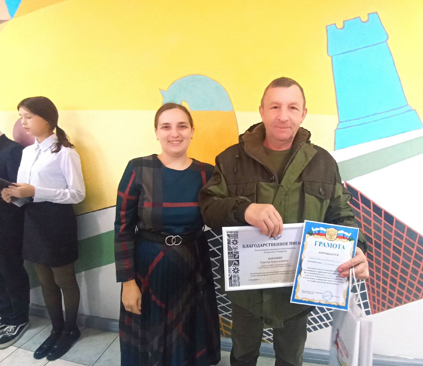 Сегодня в Билярской школе прошла торжественная линейка, которая началась с исполнения гимнов и поднятия флагов. Это хорошая традиция символизирует гордость и единство нашей школы.Директор школы Климова Марина Александровна вручила грамоты и дипломы детям, педагогам, участвовавших в различных конкурсах и мероприятиях. 7 класс выступил с новостями, поделившись интересными событиями и достижениями, которые произошли в школе за последнее время. Затем все классы последовали в свои кабинеты на Разговоры о важном.Сегодня бүген Биләр мәктәбендә тантаналы линейка үтте, ул гимннар башкарудан һәм флаглар күтәрүдән башланды. Бу яхшы традиция безнең мәктәпнең горурлыгын һәм бердәмлеген символлаштыра.Мәктәп директоры Климова Марина Александровна төрле конкурсларда һәм чараларда катнашкан балаларга, педагогларга грамоталар һәм дипломнар тапшырды. 7 нче сыйныф яңалыклар белән чыгыш ясады, мәктәптә соңгы вакытта булган кызыклы вакыйгалар һәм уңышлар белән уртаклашты. Аннары барлык сыйныфлар үз кабинетларына мөһим нәрсәләр турында сөйләшүләргә керделәр.