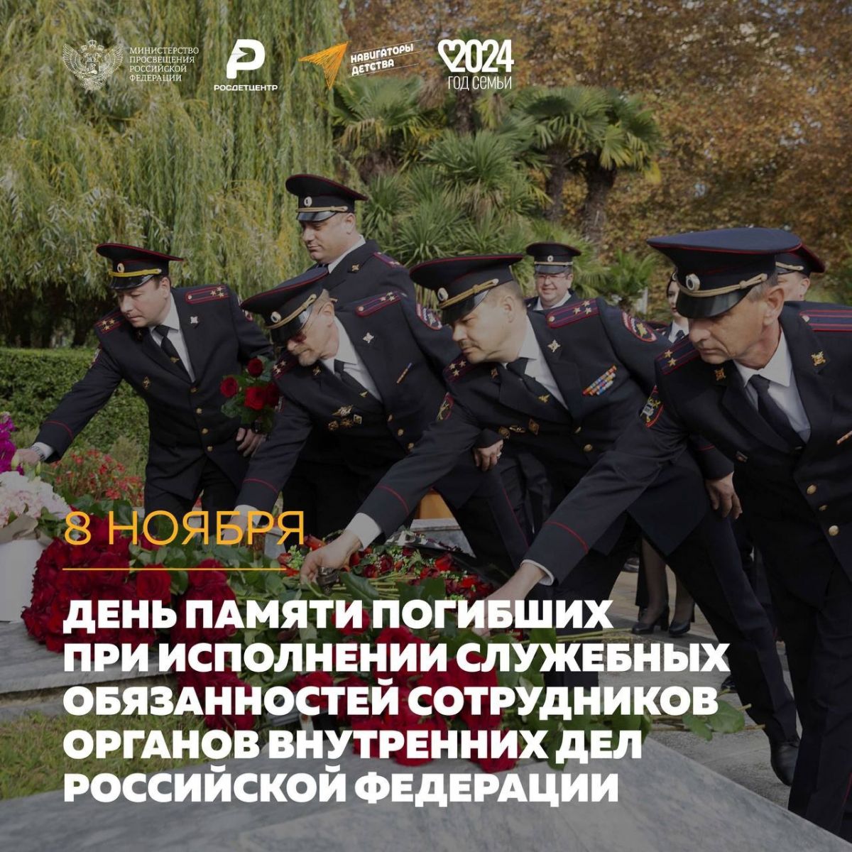 8 ноября вся страна проводит мероприятия, приуроченные ко Дню памяти погибших при исполнении служебных обязанностей сотрудников органов внутренних дел Российской Федерации.