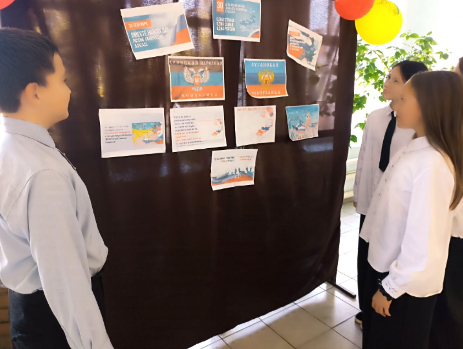 Сегодня в Билярской школе прошла фотовыставка "Россия-Донбасс-Новороссия“ ко Дню воссоединения Донецкой Народной Республики, Луганской Народной Республики, Запорожской области и Херсонской области с Российской Федерации. Мы вместе!